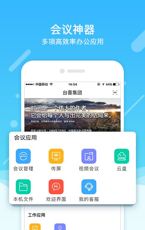 企业办公必备服务软件!《会议神器》不仅能为你提供高清流畅的视频会议功能,更可以让你在这款软件中享受到高效的文件协同服务,助您完成跨区域、跨组织的沟通与协作!