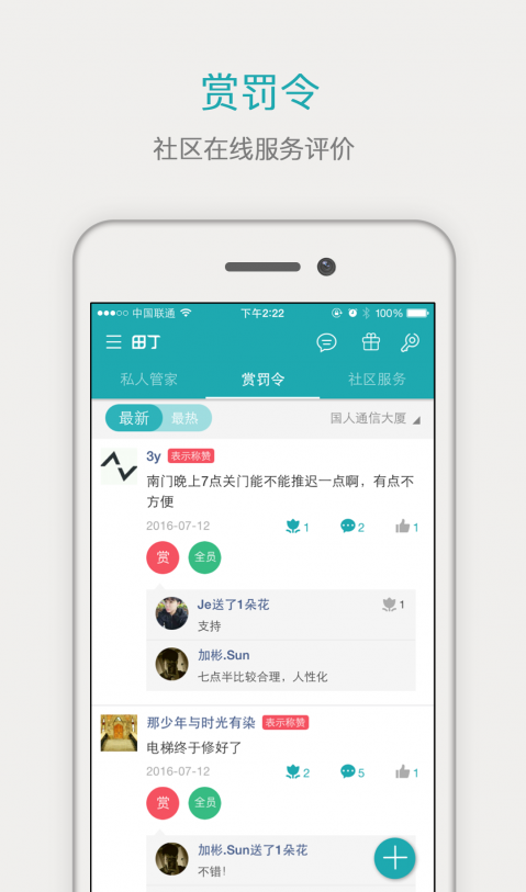 田丁app是一款生活服务应用,是我们的私人管家,由深圳市咱家科技有限公司自主研发的移动社区服务平台。