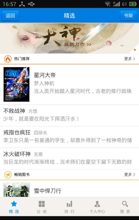 喜阅读书app融合了各大书城上万本优质图书,是个强大的阅读器。