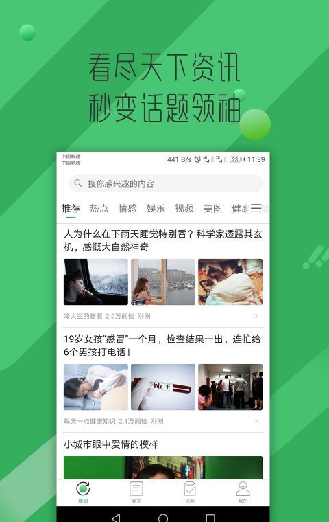 2,集有趣、有料、有品内容于一体;智能推荐,你的资讯头条专门为你定制;
