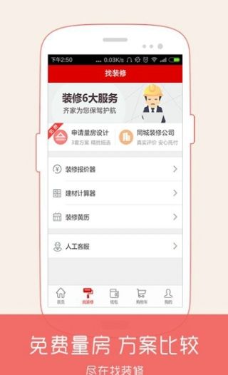 1、找装修:免费量房设计,免费监理服务,最精准的方案预算,拒绝预算浮动!