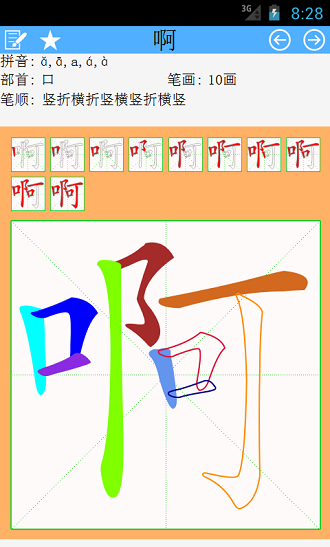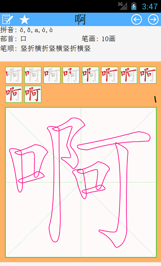 4、同时,对汉字的每一笔笔顺都进行分解展示;