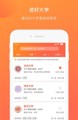 2、进好大学:最全的大学基础信息库;