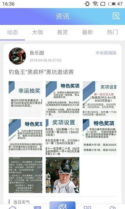 4、钓鱼指数和钓鱼天气预报(气压、湿度、风向等),掌握最精准的信息,从容应钓;