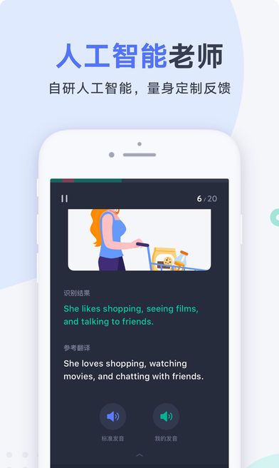 5、口译评分和语音评分技术:独家研发了口译评分技术,判断用户所说的英文句子是否符合正确语义和语法;语音评分技术能对英语发音做出最精确的评价。