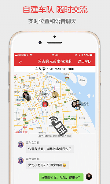 1、车队聊天:实时位置语音对讲机,随时建立自己的车队;