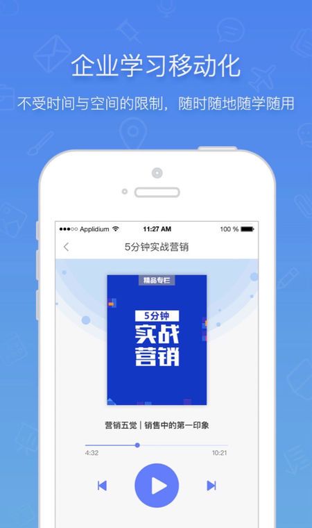 4、企业学习移动化:不受时间与空间的限制。随时随地学随用。