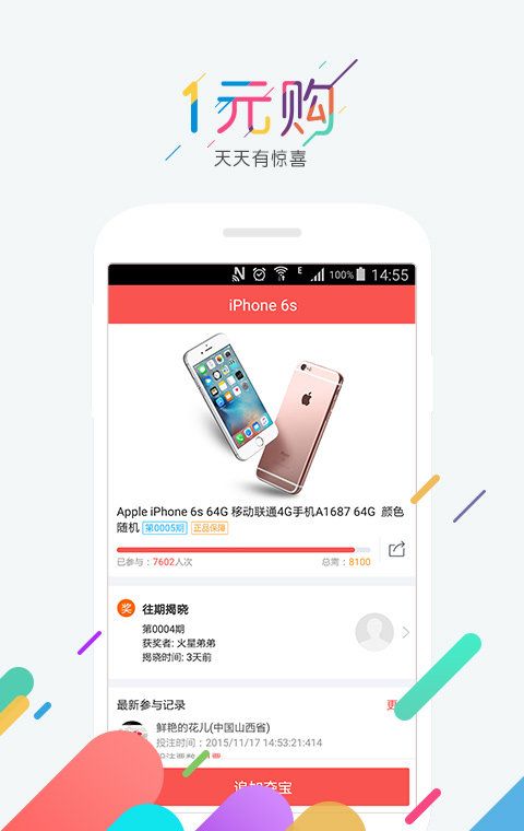 一元夺大宝,给1元一个机会,100%正品,100%包邮,公平/公正/公开,一元得手机,一元得平板,一元得家电,一元得电脑,更多惊喜快来1元购体验吧。