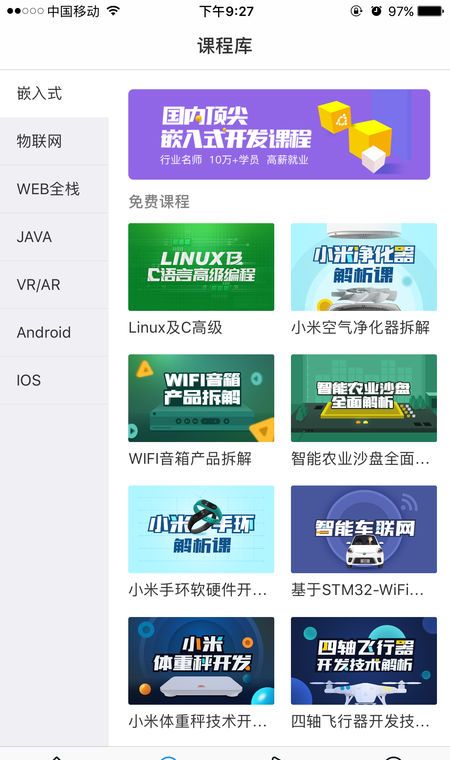 帮助用户便捷高效学习。其包含了嵌入式、物联网、Java EE+大数据、WEB全栈、VR/AR、Python、iOS、Android等八大方向课程,10000+海量高清视频课为用户提供了丰富的学习资料。