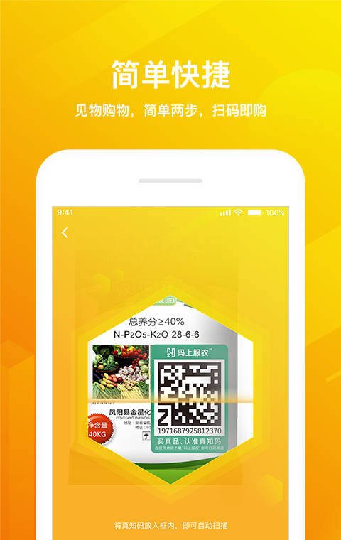 《码上服农》是一款专注于绿色农产品在线购物的手机app,这款软件不仅能为你提供最优质的农产品交易体验,更可以让你在这款软件中享受到见物购物,简单两步,扫码即购!