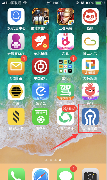 ❹在App安装完后会在手机桌面显示济南轨道交通App的图标