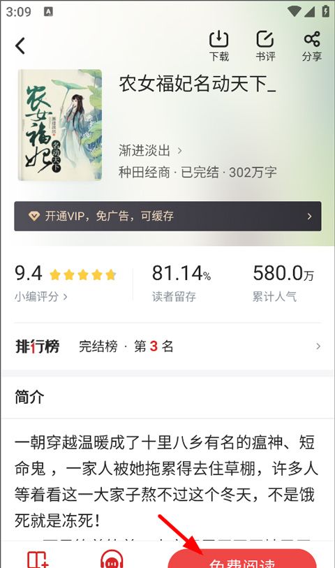 3、打开小说详情页,用户可点击添加到收藏夹,也可直接免费阅读;