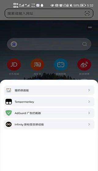 4、在此处,你可以查看到所安装的扩展,如猫爪、油猴、广告拦截等等。