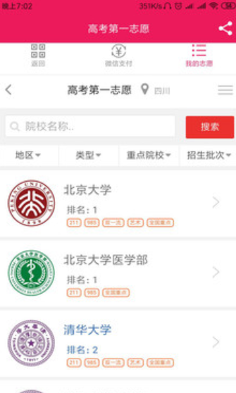 高考最为中国的第一大考试,它的影响力不言而喻,有人因为高考一举改变了自己之前的状态;也有人因为高考失利而从此一蹶不振,让人心疼。不管你的成绩如何,只要你尽力并且考上了一所理想的学校那就值得庆幸了。《高考第一志愿》是一款高考志愿指南的应用,当你还在犹豫到底第一志愿该填哪所学习,这款软件则给你最大的帮助,推荐到最适合你的学校。