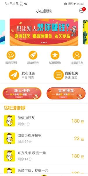 小白赚钱,一款专为安卓手机设计的赚钱小助手。空闲时间拿出手机联网就能玩小白赚钱APP。无论你是学生、宝妈还是网上兼职者,这款APP都能成为你的掌上ATM机。并且小白赚钱利用大数据分析还能猜出你喜欢的任务类型,常为你推送这一类的任务,让你在做自己喜欢的事同时还能赚钱。