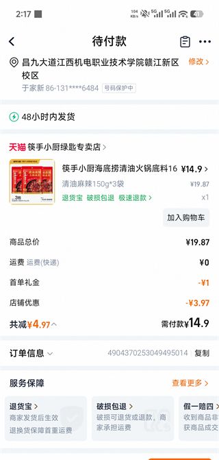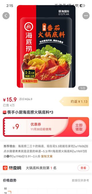 3、点击【立即领券】,下单后自动识别现金券减免,直接购买即可。