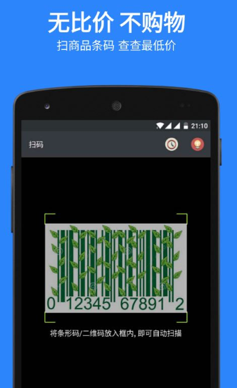 把商品条形码放入框中,自动扫码比价