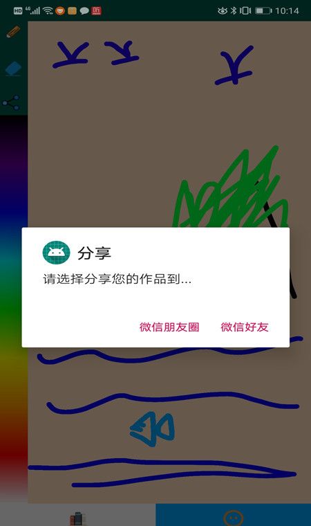 自己涂鸦的优秀作品可以分享到微信朋友圈。
