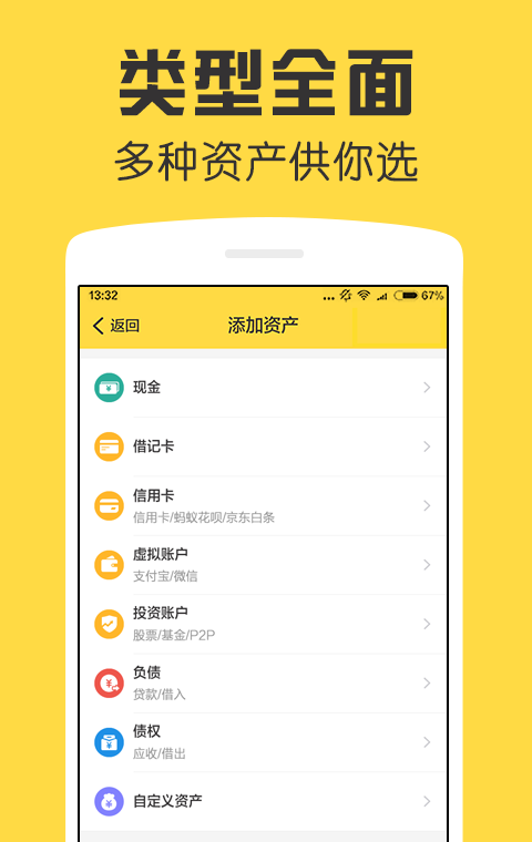 图表分析:资产,负债,净资产分类统计,用饼图、折线图、柱状图等,多维度帮你实时盘点资产状况,了解资产构成