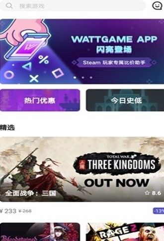 WattGame软件是一款专门为用户们带来一个不错的游戏价格比价助手软件,通过WattGameAPP,玩家们可以知道steam平台的某款游戏是不是值得购买,还会为你提供各种优惠和购买渠道。