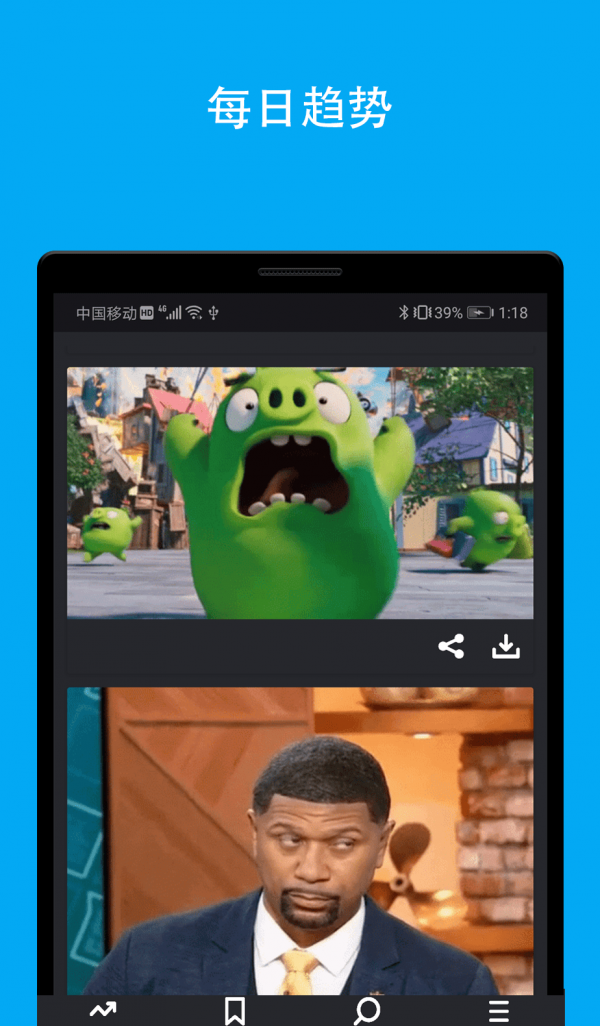 《动态图库》是一个神奇的app,里面收录了网络上各种火爆的动态图片,用户可以在app里进行分类或搜索,找到自己想要看的动态图片,然后对其进行下载或是分享。每天还会实时更新最新的GIF图。这是一款可以给用户带来欢乐的app。