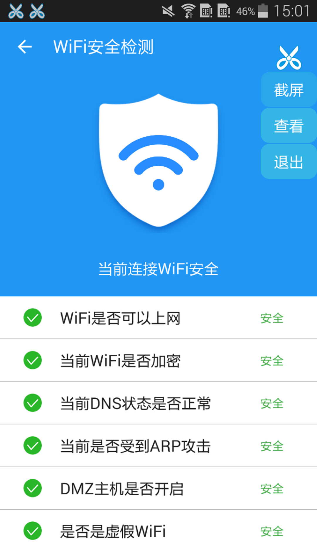 3、WiFi连接以后,APP会自动的为您检测当前的WiFi安全。