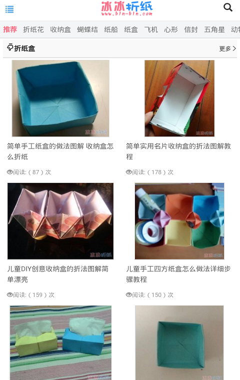 冰冰折纸,一款交折纸的app,你知道一张小小的纸张,可以变成花草、可以变成动物、可以变成有用的盒子吗,平台为大家提供了丰富多样的折纸教程,不仅有图文的形式,还有视频教程,让你可以一步一步跟着视频折,折成的作品可以用来装饰房间,也能送给其他人哦。
