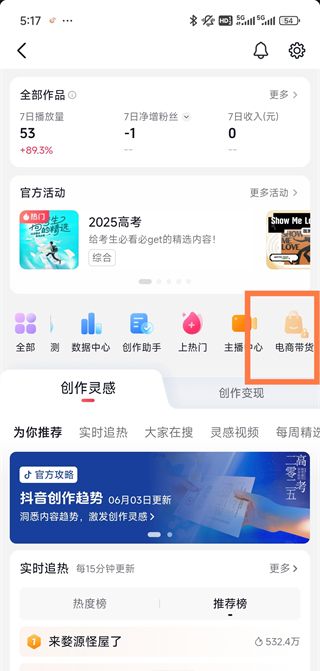 3、找到电商带货入口【电商带货】。