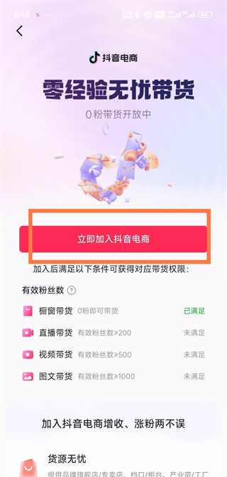 4、点击【立即加入抖音电商】。