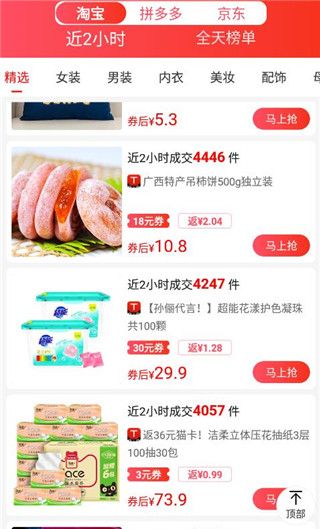 2、可以看到由各平台商品,点击马上抢。