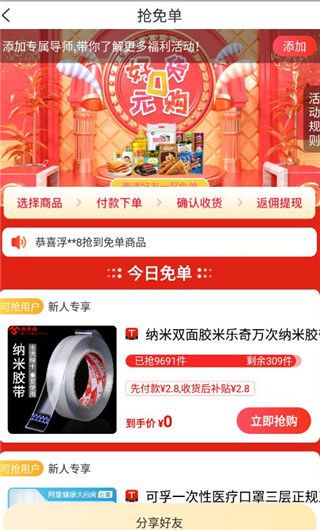 1、新人专享福利:注册即领188元红包,首单返利加倍,0元购商品限时抢。
