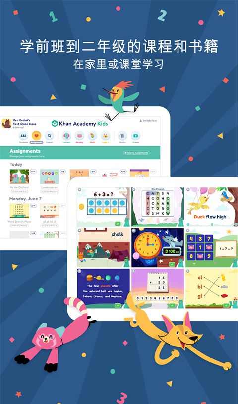 可汗学院儿童版app下载是专门为儿童设计的移动学习应用程序。该软件以卡通的形式呈现,专为2-5岁以上的儿童制作。它有数千本原创书籍、视频、课程和各种小活动,将数学和阅读与绘画、音乐和讲故事等创造性活动相结合。可汗学院的儿童应用程序包括学习、社交、游戏、动物等。它通过游戏教育孩子,可以正确地引导他们学习。用户可以通过该软件进行幼儿教育,培养孩子的认知发展和良好习惯,通过他们的爱好培养和教育孩子,在保持孩子乐趣的同时获得更好的辅助启蒙。