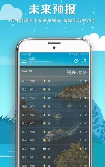 这是一款查询天气情况的软件,包括全国3000多城市与国家气象局合作打造独家一手天气情况,最新天气早知道为你提供智能的穿衣搭配天冷记得保暖,查看未来十五天的天气情况为旅游出行的用户带来了非常方便的服务,你还在等什么,如果你喜欢这款天天气象,欢迎前来本站下载。