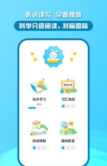 1、米盒绘本馆是一款分阶段练习的学习软件,让孩子们在玩中爱上英语。