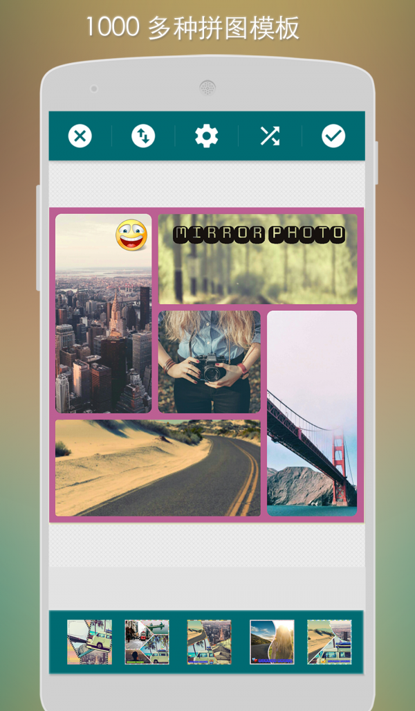 1、拼图功能,200多种拼图效果,设置拼图背景颜色,背景图片。