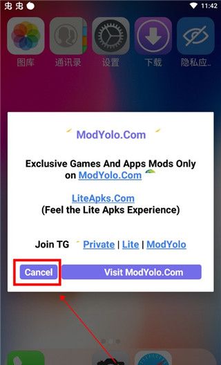 2、进入后点击左边的【cancel】,这个是用户需知之类的,确定后直接进入就行。