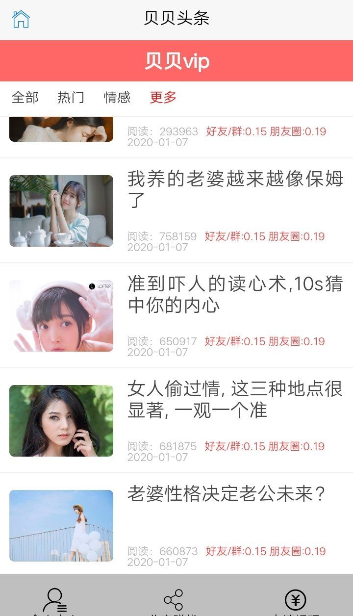 3、贝贝头条在线阅读资讯可以赚取收益,转发好友阅读,坐赚收入。
