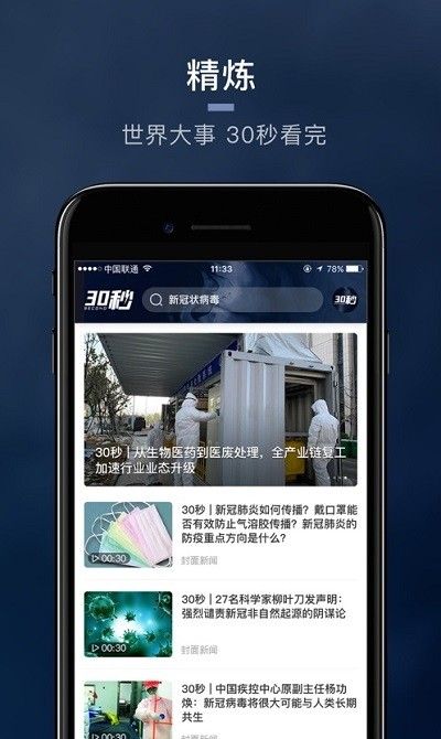 30秒app是一款有着各种新闻资讯的手机平台,用户可以在30秒里详细的了解到最新的新闻资讯信息,同时30秒app中告别传统的文章阅读,而是通过各种短视频来进行看新闻,视频时间只有三十秒但非常专业透彻,让你轻松了解。