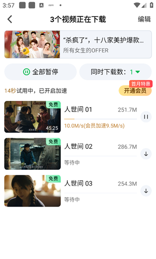 5、选择需要下载的集数,随后点击屏幕右下角的“开始下载”。