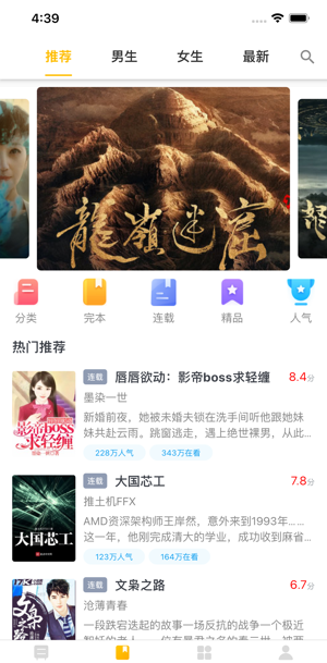 1、熊猫读书在线书籍分类阅读,在线离线真人听书。它拥有的阅读资源,网罗时下各种热门网络小说;