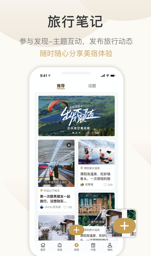 可以在圈子当中发布自己的旅行印记,分享自己的入住体验,记录美好瞬间。