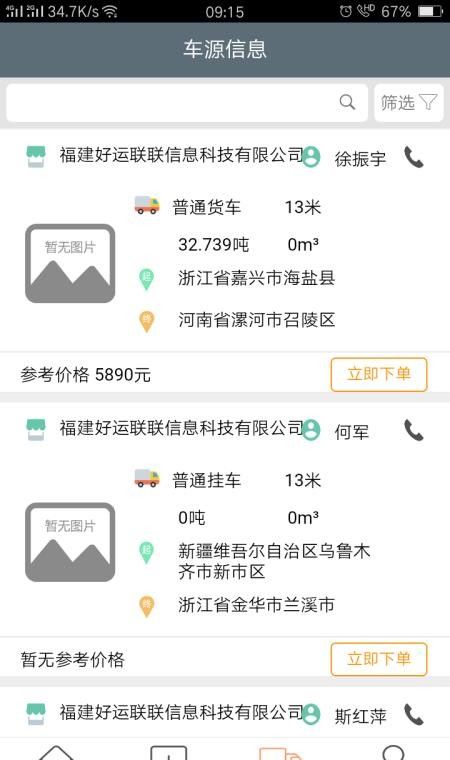 3、运输工作人员可以用它随时查找订单信息,或是发布自己的车型资源。