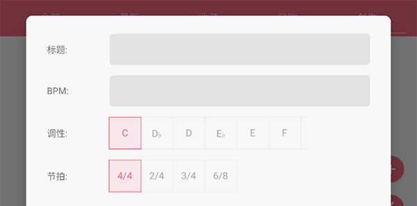 3、轻点+号,输入您歌曲的基本信息,点击确认即可进入创作界面。