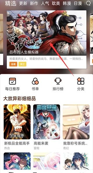 1、首先,下载并安装喵漫画,然后进入软件并点击要阅读的漫画。