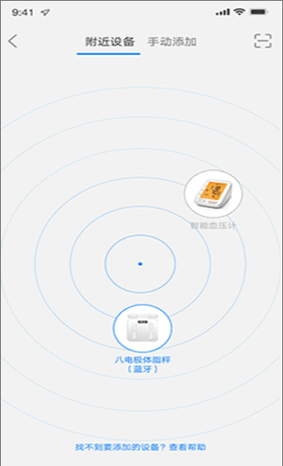 附近设备:打开附近设备页面自动搜索附近可匹配设备,点击搜索出来的设备即可自动进行绑定;