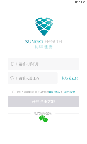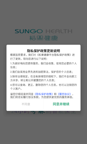 1、下载并安装松果健康应用程序,阅读协议并选择是否同意。