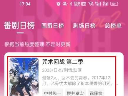 1、下载安装鸭梨鸭梨App后,选择喜欢的动漫资源(如《咒术回战第二季》);