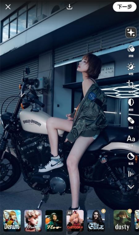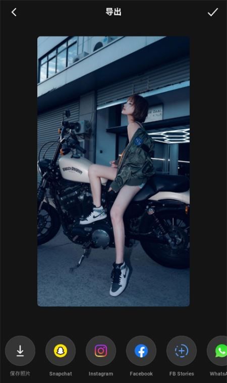 4、编辑完成之后点击右上角的下一步,选择保存照片或是分享到社交平台。