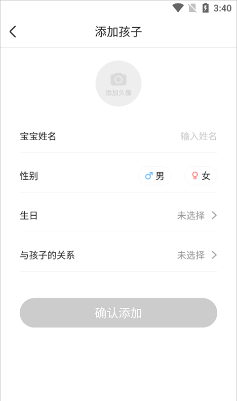 4、最后输入孩子信息后,点击确认添加。