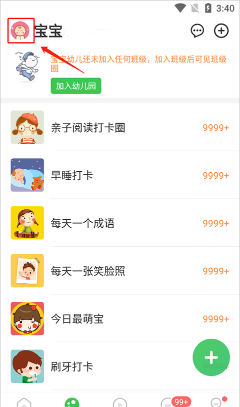 3、接着点击添加宝宝后面的+号。